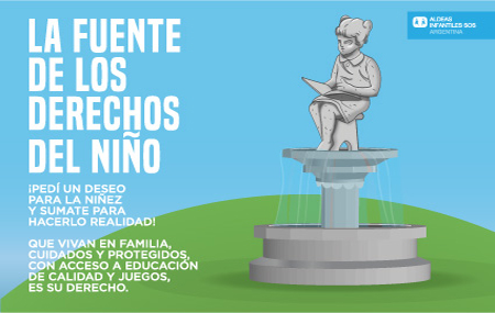 En este contexto, y para conmemorar el Día Universal de los Derechos del Niño, en honor a la aprobación de la Declaración de los Derechos del Niño en 1959 y a la Convención sobre los Derechos del Niño en 1989, desde Aldeas Infantiles SOS Argentina instalaremos la primera Fuente de los Derechos de la Niñez. Acercate este 21 de noviembre junto a tu familia, hijos, sobrinos y amigos desde las 10.00hs a la Avenida Corrientes 420 en Capital Federal y pedí un deseo por los Derechos de los Niños y Niñas.