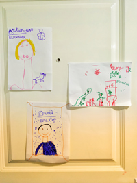 Entre las actividades que se realizaron, los niños hicieron autorretratos y utilizaron como base fotos que sacaban los participantes con las tablets. El resultado: arte en estado puro.