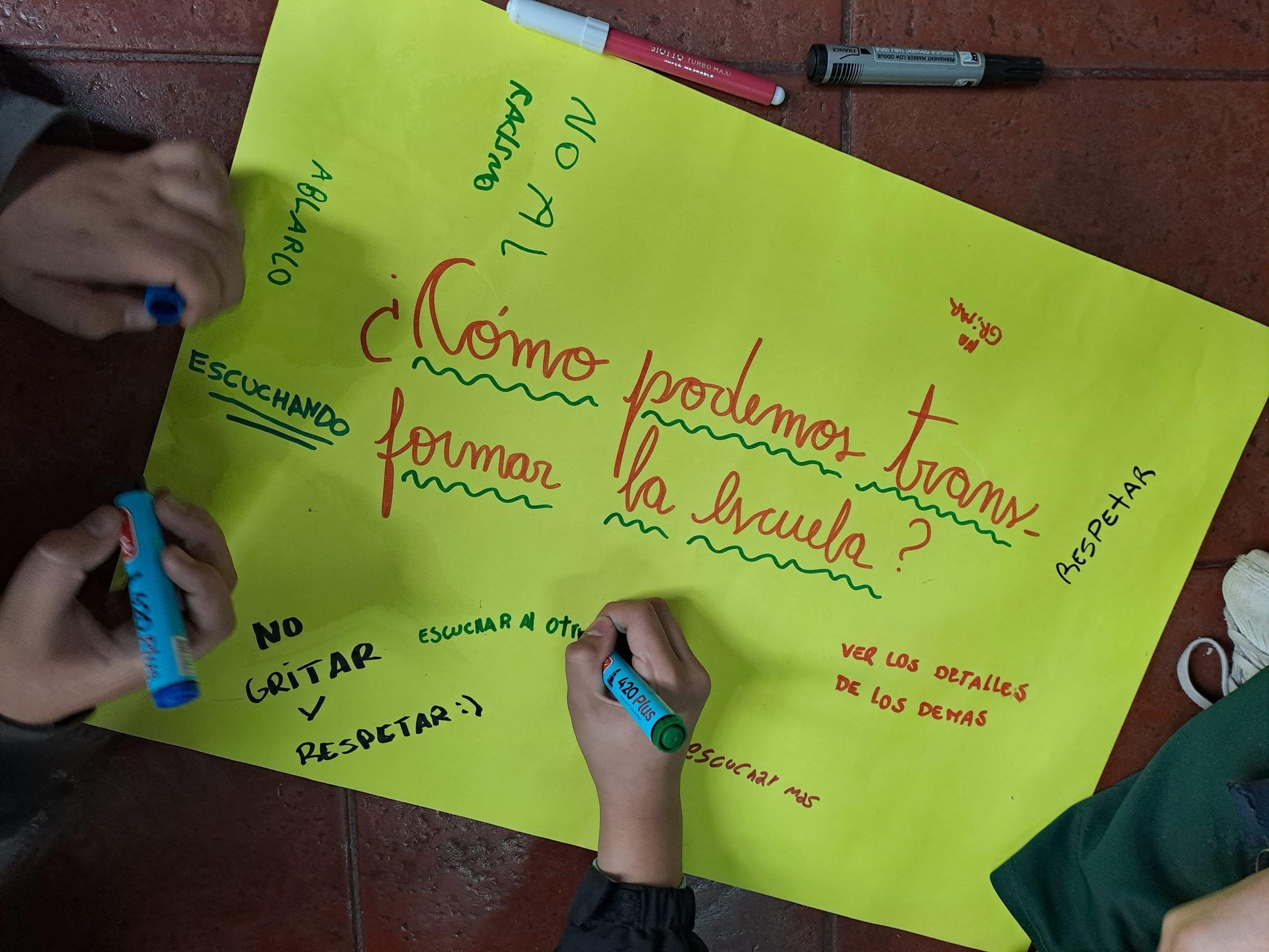 En las escuelas de la ciudad, ya que son espacios de relación humana de los chicos y chicas y donde emerge la necesidad de aprender los roles de prevención, resolución y contención del conflicto. Es en este sitio colectivo donde resulta posible trazar los caminos de la comunicación y la convivencia para aprender una cultura del consenso.